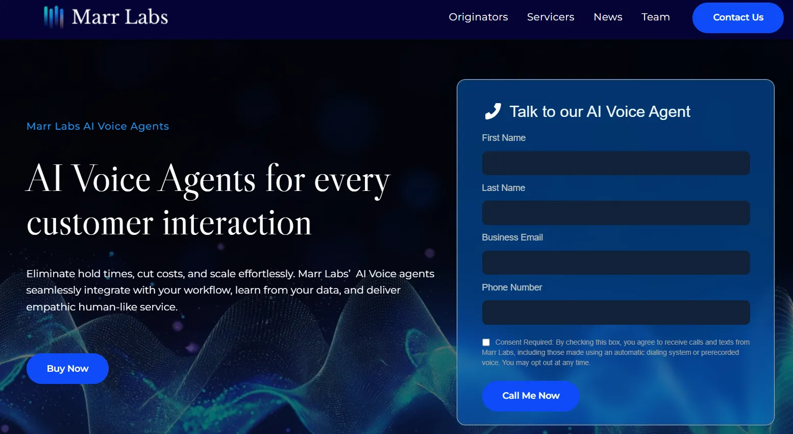 Marr Labs specializes in AI voice agents designed to handle every customer interaction. Their technology aims to automate customer service processes by replacing traditional phone systems and human agents with intelligent virtual assistants. These voice agents are built to sound and respond like human agents, creating a more natural interaction experience for customers.